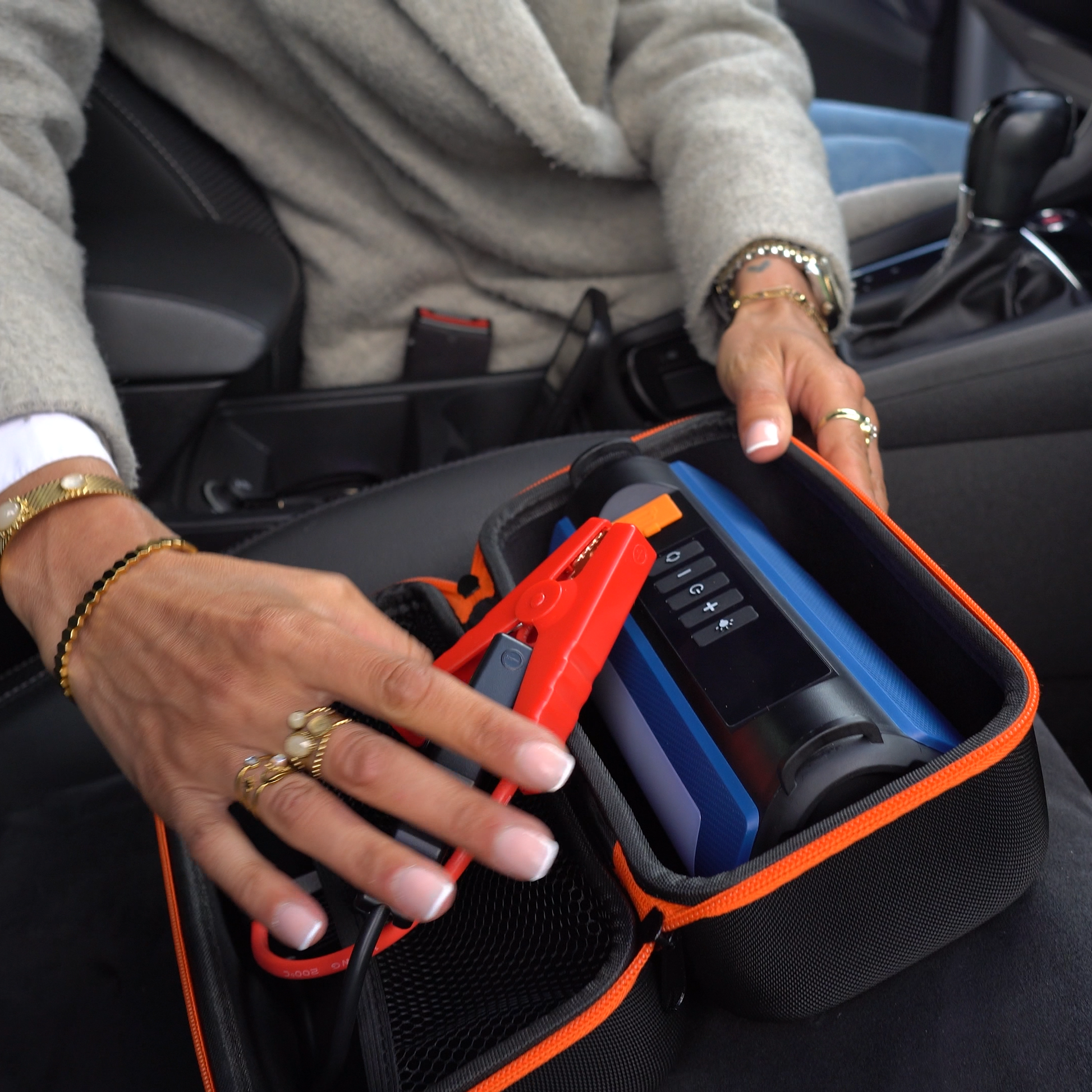Der im AutoRevive enthaltene Starthilfe-Akku ist mit Fahrzeugen kompatibel, die mit einer 12-V-Batterie betrieben werden. Die intelligenten Clips sind so konzipiert, dass sie bei korrekter Verwendung Verletzungen des Benutzers verhindern und das Produkt gleichzeitig vor Kurzschlüssen schützen.
